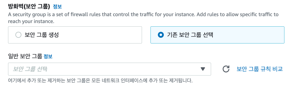 보안 그룹은 인스턴스에 대한 인바운드, 아웃바운드의 네트워크 트래픽을 제어하는 가상의 방화벽 역할을 수행합니다.