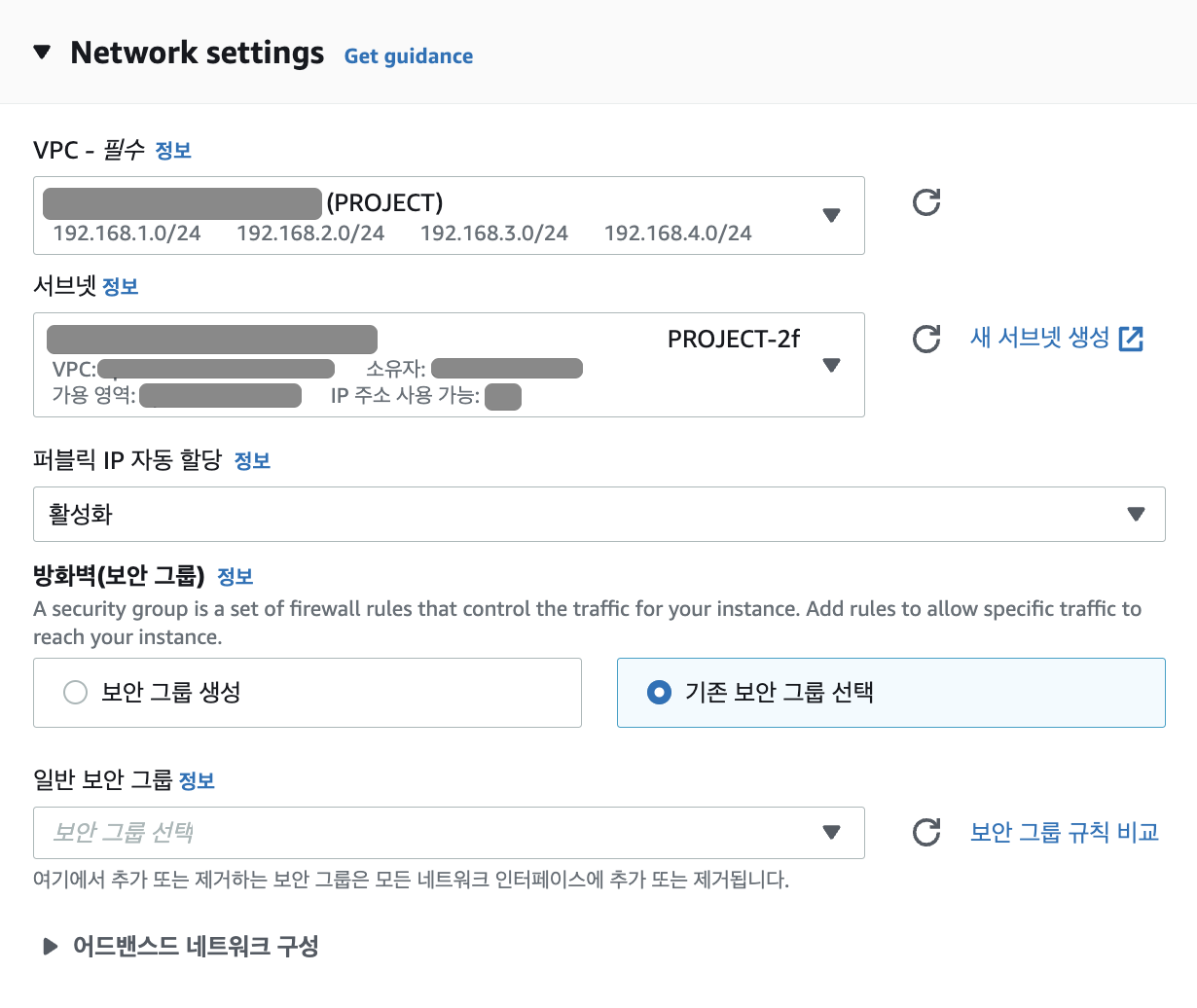 특정 서브넷을 지정하지 않고 ec2인스턴스를 기본 VPC로 시작하면 기본서브넷(/20)으로 자동으로 시작됩니다.