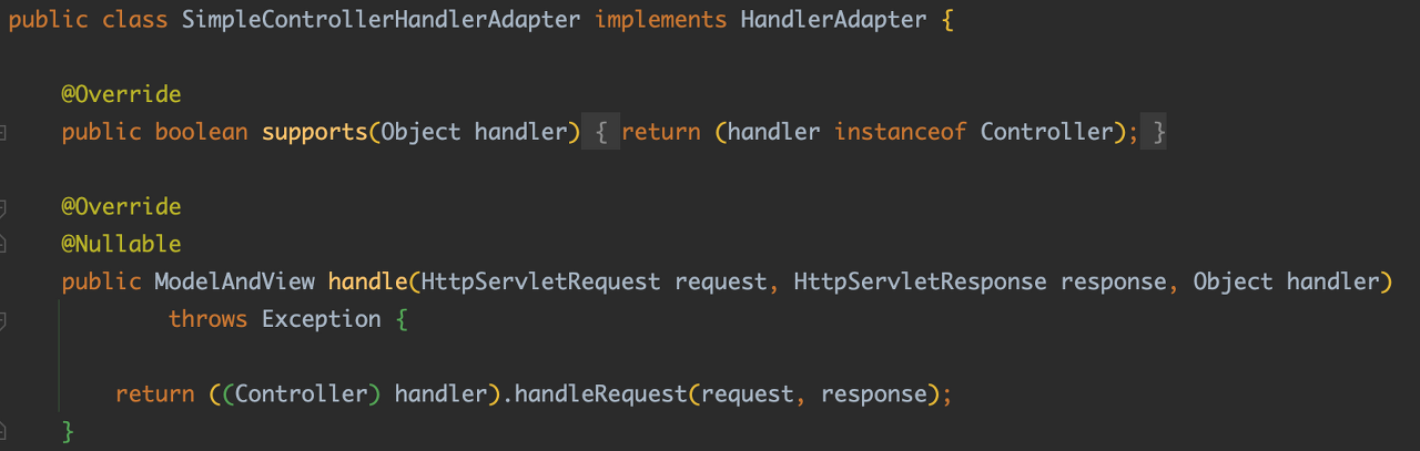 실제로 스프링에는 SimpleControllerHandlerAdapter 가 존재합니다.