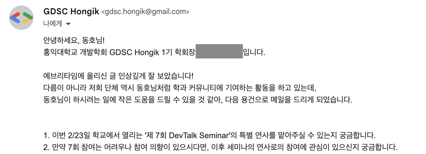 이러한 노력을 알아주었는지 GSDC에서 후배들한테 동기부여를 줄 수 있는 기회를 받았다.