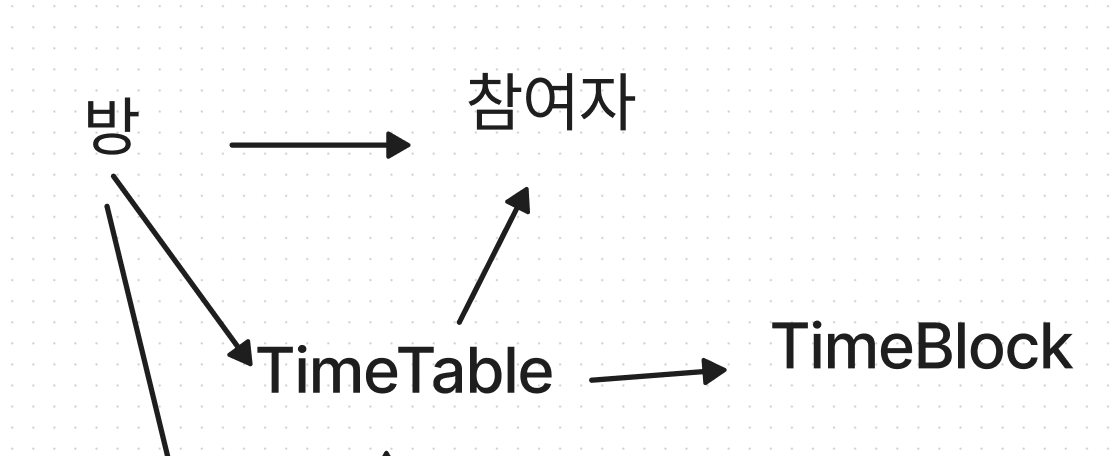 하지만 TimeBlock이 수정될때 (참여자가 자신이 등록한 시간을 수정할 때) 방의 정보를 확인해 검증을 해야할 필요가 있었다. 방을 생성할때 지정한 마감기한이 지나지 않았는지, 방이 가지고 있는 날짜들과 시간들 안에 포함되는 시간인지 등을 검증해야했다. TimeBlock에서 Room을 직접 불러 호출하게되면 Room <-> TimeBlock의 양방향 의존성이 생기게 되었다. 이를 해결하기 위해서 인터페이스를 통한 의존성 역전을 이용했다. 또, TimeBlock이 Room을 구분하기 위한 RoomUuid를 불변값으로 가지고있게 만들었다.