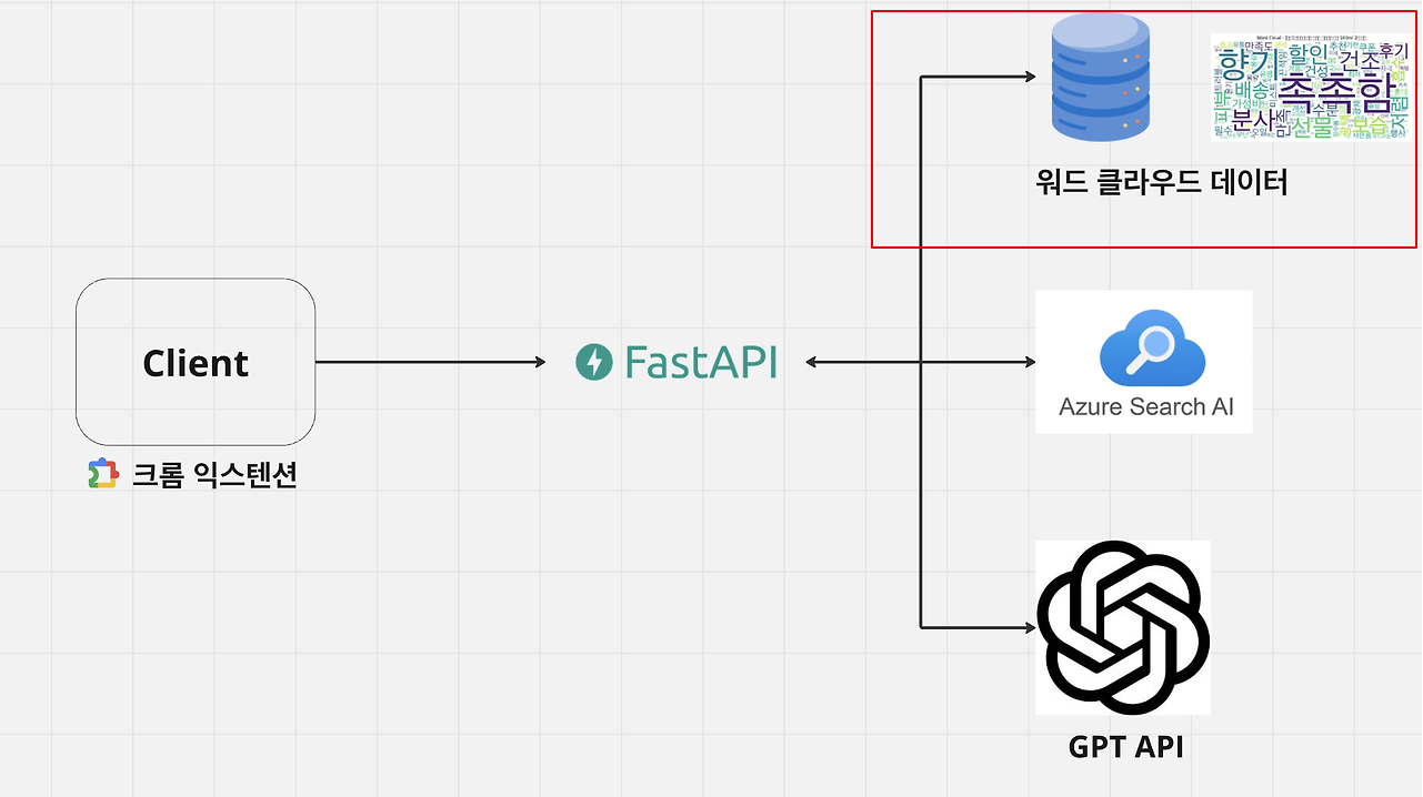 리뷰를 키워드로 바꾸어 워드클라우드로 구축해야합니다. 실제 리뷰 내용에는 해당 상품을 특정하는 정보와 관련없는 내용(ex. 합니다, 써보다, 좋아요, 이용하다, 구입하다 등) 이 많이 포함되어있습니다. 이 내용들을 모두 포함하여 워드클라우드로 구축하면 실제 상품의 사용기를 특정하는 내용보다는 쓸모없는 내용들로 워드클라우드 데이터가 채워지게 됩니다. 양질의 워드클라우드를 구축하기 위해선 각 리뷰에서 사용자가 느끼는 감정이나 특징, 혹은 제품의 특징이 담긴 키워드를 추출해내야 합니다. 수십만 건의 리뷰데이터에서 사람이 하나씩 추출해낼 순 없으므로 LLM을 이용합니다.