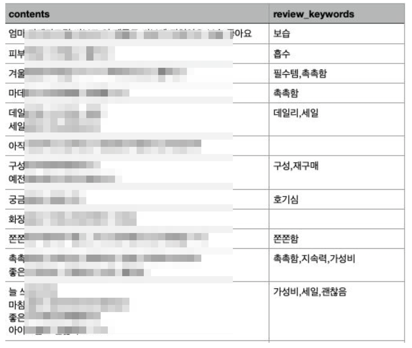 리뷰 키워드 추출 최적화가 가능하다.