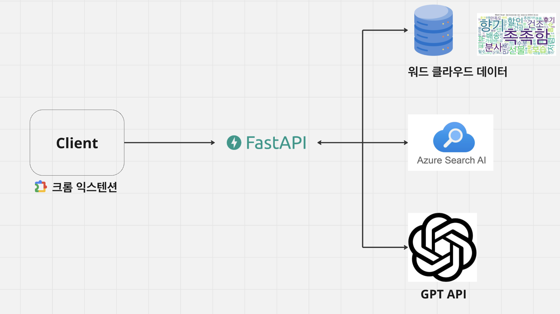 다음 그림은 해커톤 기간 총 2.5일간 구현한 서비스 아키텍처 입니다.
