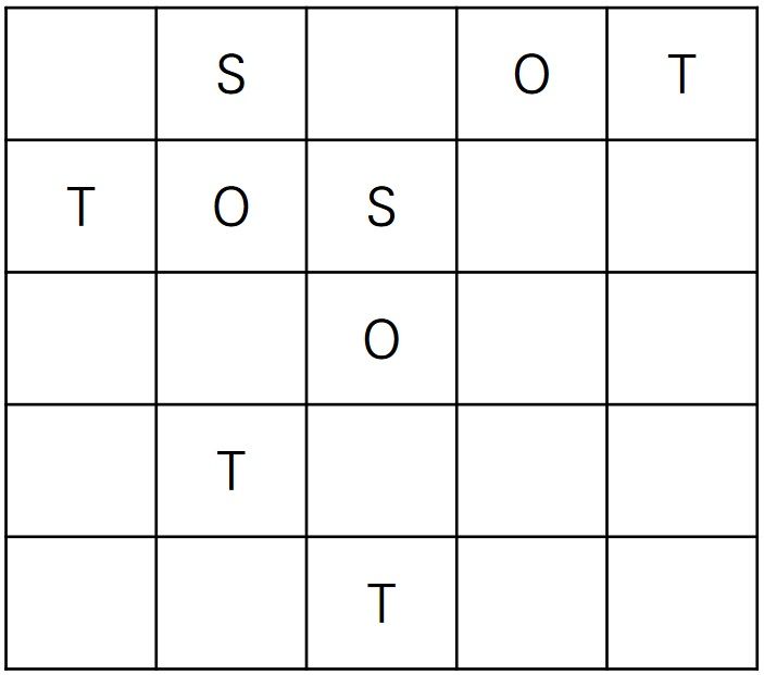 다음과 같이 3x3 크기의 복도의 정보가 주어진 상황을 확인해보자. 본 문제에서 위치 값을 나타낼 때는 (행,열)의 형태로 표현한다. 선생님이 존재하는 칸은 T, 학생이 존재하는 칸은 S, 장애물이 존재하는 칸은 O로 표시하였다. 아래 그림과 같이 (3,1)의 위치에는 선생님이 존재하며 (1,1), (2,1), (3,3)의 위치에는 학생이 존재한다. 그리고 (1,2), (2,2), (3,2)의 위치에는 장애물이 존재한다.