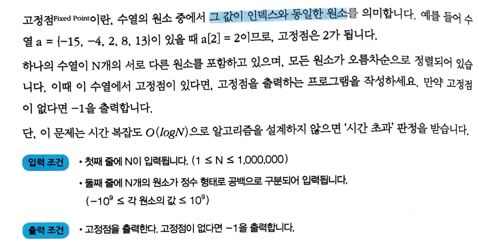 - 이진 탐색으로 data[mid] == mid 인지 확인해서 왼쪽, 오른쪽으로 나누려고 시도.