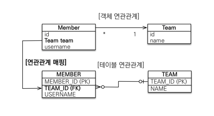 - 테이블 : 외래키 하나만 있어도 가능하니까 방향의 개념이 없다.