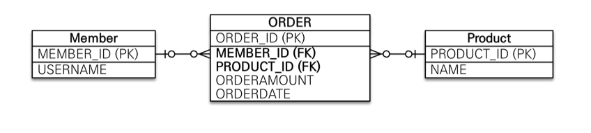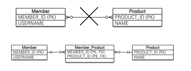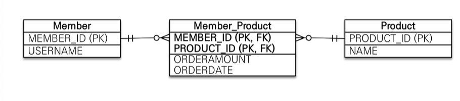 여기서 Member_Product 의 PK 는 FK 두개를 묶은 (MEMBER_ID, PRODUCT_ID) 이다.