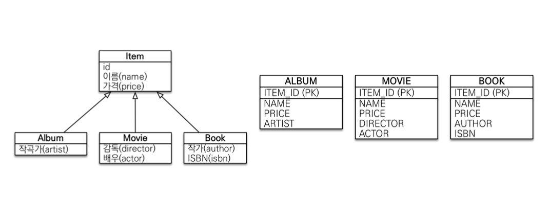 | 구현클래스마다 테이블 (안씀) | 안쓰므로 생략 | 안쓰므로 생략 |