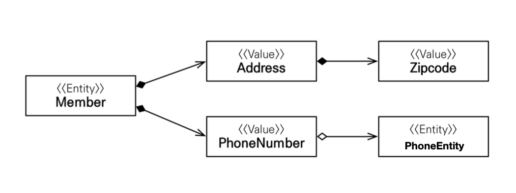 - 객체로 값타입들을 모은 타입 (복합 값 타입)