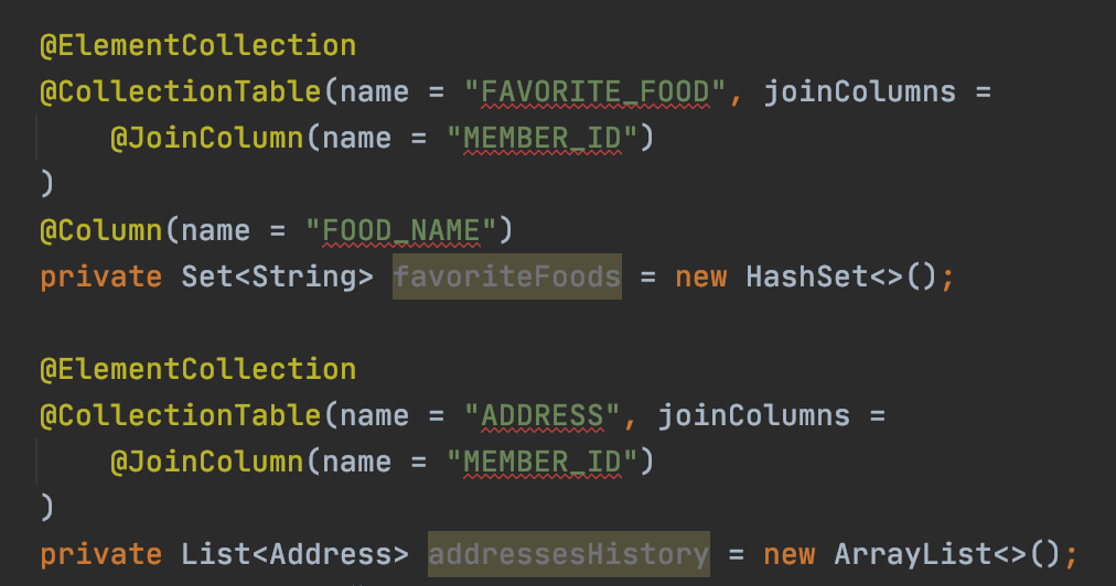 findMember.getFavoriteFood() -> Set<String> 형식이다.