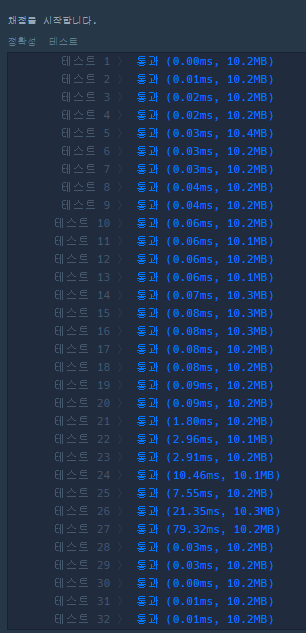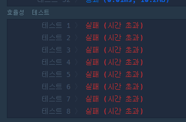 프로세스 그대로 짰을때 정확성테스트는 전부 통과했지만 효율성 테스트는 전부 실패했다.