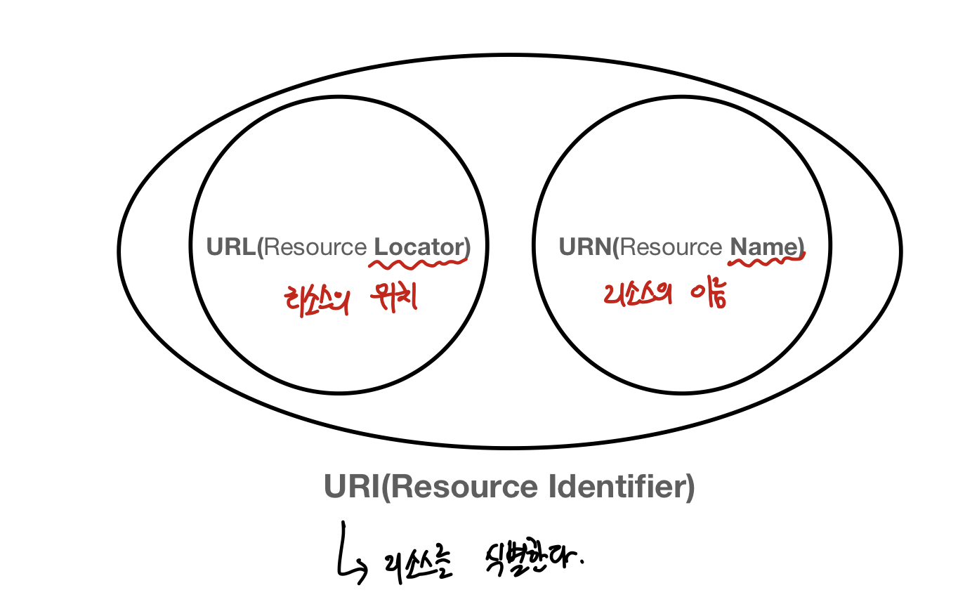 - URI (Uniform Resource Identifier) : 리소스를 다른 리소스들과 식별하는 방식