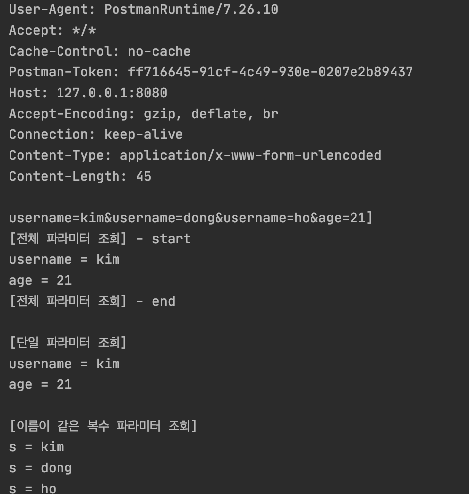 도 request.getParameterNames() 로 파라미터 정보를 쉽게 받을 수 있다.
